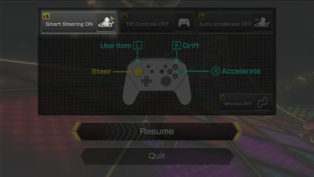 Sr Sl Smart Steering Off Tilt Controls Auto Accelerate On Off Use Item Sl Sr Drift Iders Accelerate Steer Map On Resume Quit Mario Kart 8 Deluxe How To Disable Smart Steering And